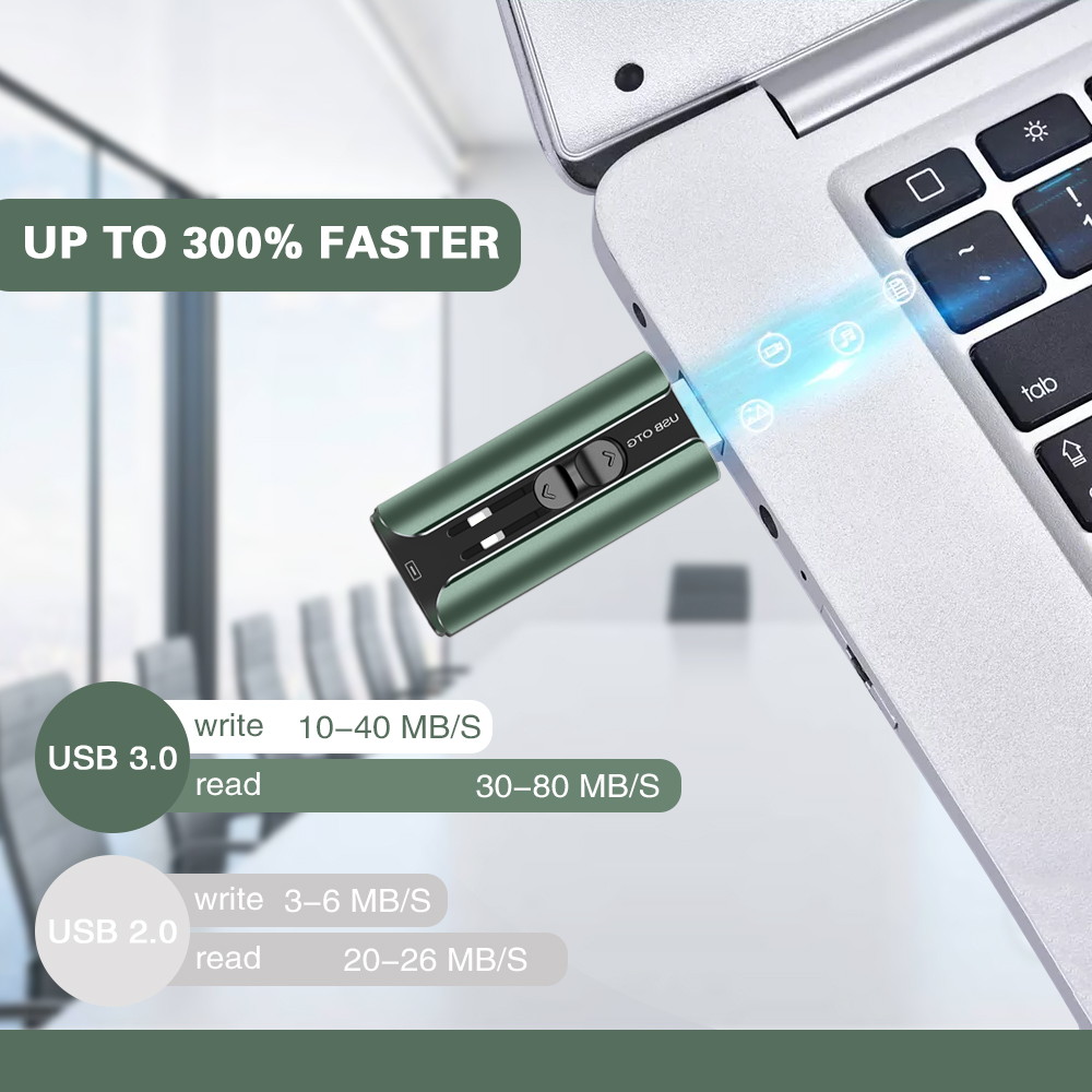 • ·High-Quality flash drive: The USB flash drive for iphone is made of frosted aluminum metal and adopts an interesting retractable design and convenient keychain design.the design can not only prevent the port connector from being damaged when the thumb drives is not in use, but also can carry the memory stick and prevent it from being lost.