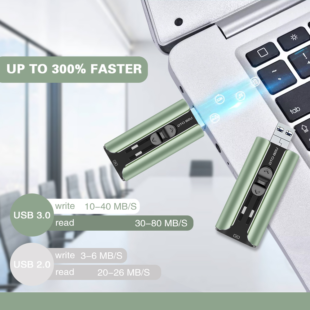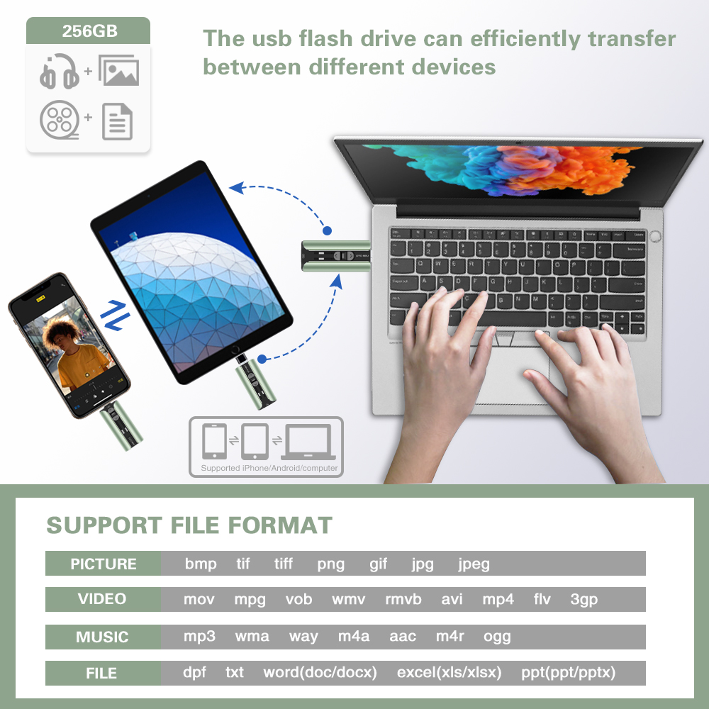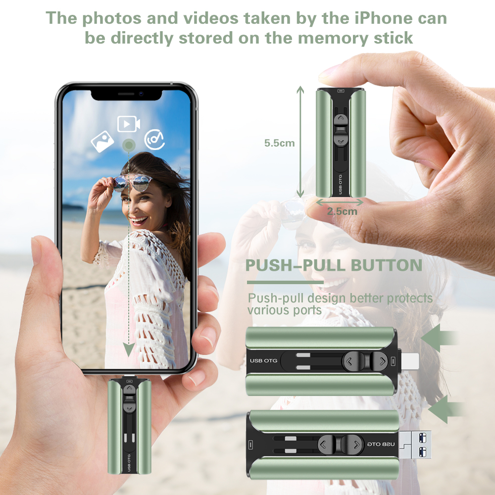 ·High-Quality flash drive: The USB flash drive for iphone is made of frosted aluminum metal and adopts an interesting retractable design and convenient keychain design.the design can not only prevent the port connector from being damaged when the thumb drives is not in use, but also can carry the memory stick and prevent it from being lost.